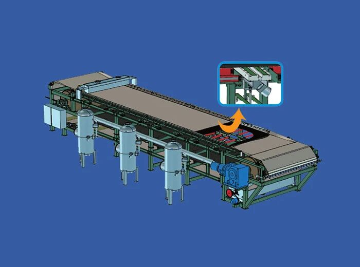 帶式真空過濾機是一種自動化程度較高的新型固液分離設備,該設備由機架、真空箱、驅動輥、壓布輥、糾偏輥、展布輥、料漿分布器、濾布糾偏裝置、濾布再生裝置和傳動裝置、濾布等部件組成,是充分利用物料重力和真空吸力實現固液分離的高效分離設備。